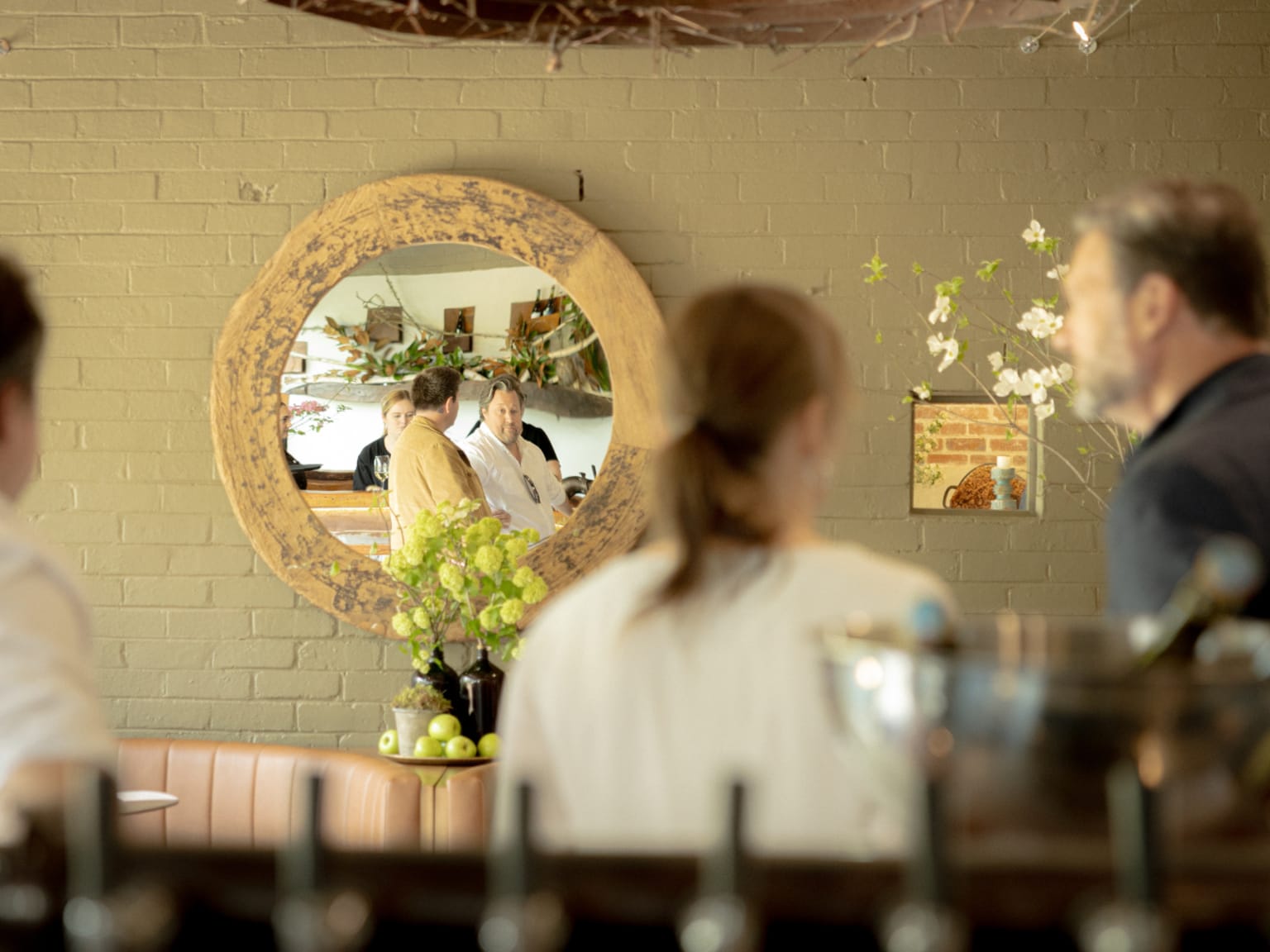 Our new home sits at the centre of the estate beside Meletos and The Farmhouse accommodation, surrounded by vineyards and orchards. Designed to bring people together, it features a barrel hall, cast iron chandeliers, and spaces to linger and savour the beauty of the Yarra Valley.